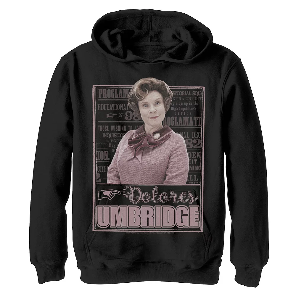 He’ll love showing off his favorite look with this boys’ Harry Potter Dolores Umbridge Proclamation Portrait Graphic Fleece Hoodie.