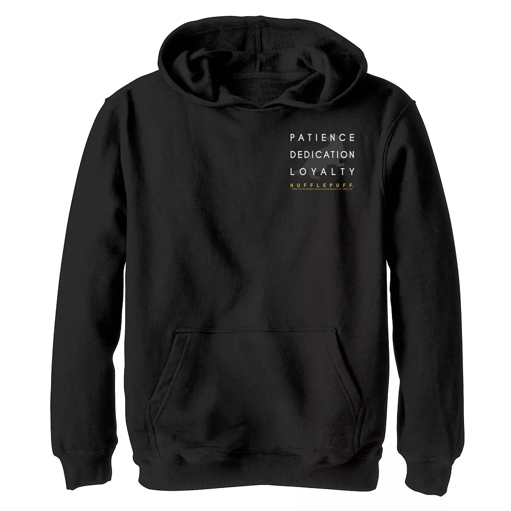 He’ll love showing off this boys’ Harry Potter Hufflepuff Qualities Left Chest Graphic Fleece Hoodie.