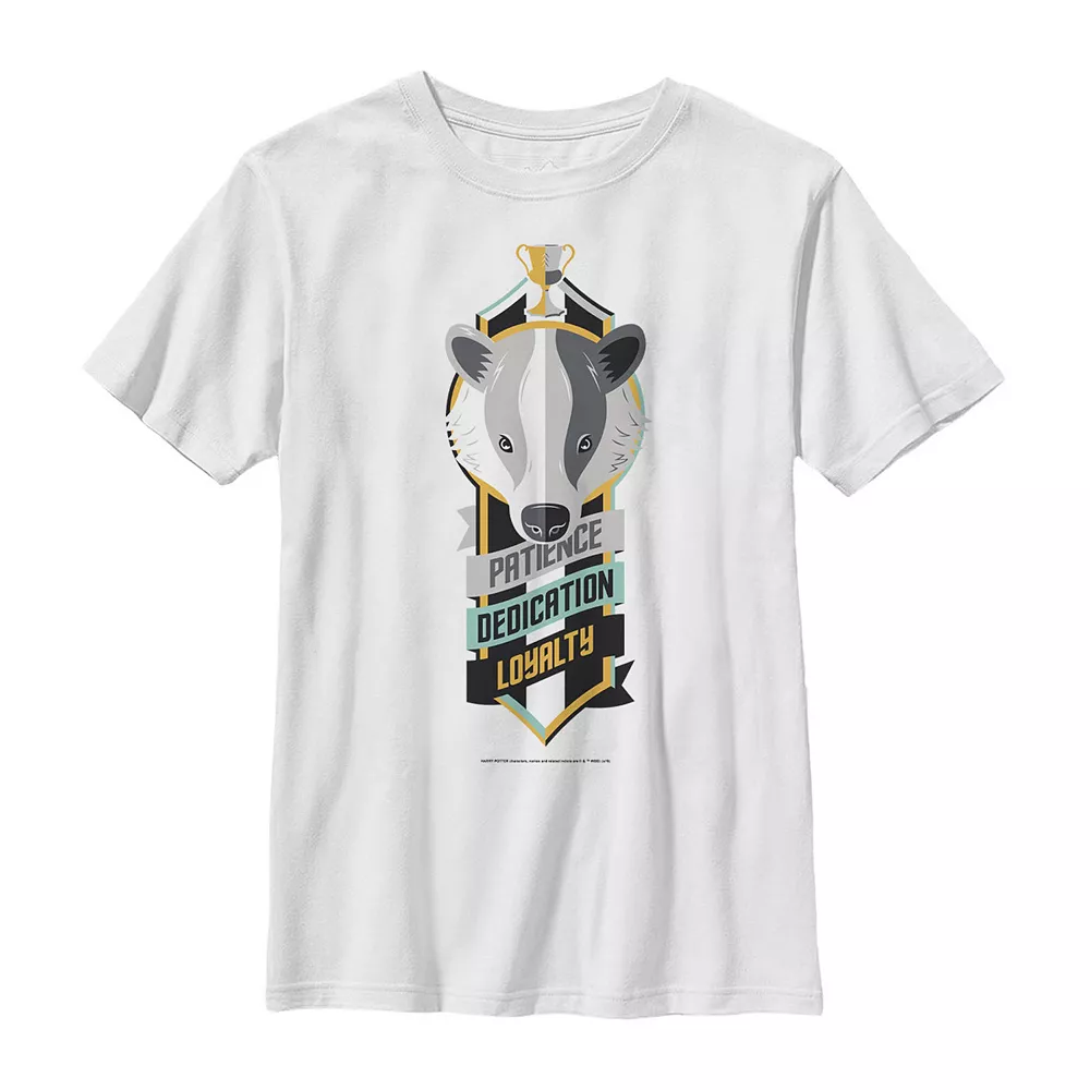 He’ll love showing off his favorite look with this boys’ Harry Potter Patience, Deication And Loyalty Hufflepuff Badge Graphic Tee.