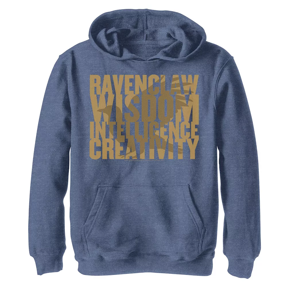 He’ll love showing off this boys’ Harry Potter Ravenclaw Wisdom Intelligence Creativity Text Graphic Fleece Hoodie.