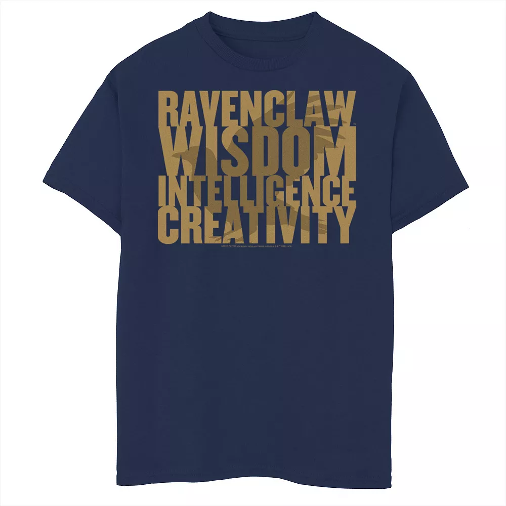 He’ll love showing off this boys’ Harry Potter Ravenclaw Wisdom Intelligence Creativity Text Graphic Tee.