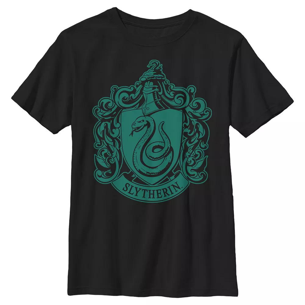 He’ll love to show off his sense of style with this boys’ Harry Potter Slytherin Dark Badge Logo Graphic Tee.