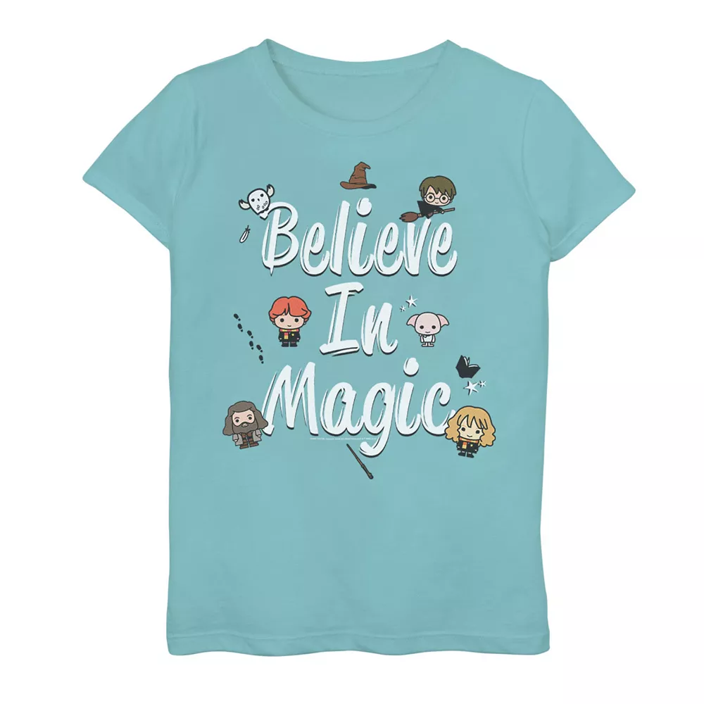 She’ll love the awesome style of this girls’ Harry Potter Believe In Magic Cute Cartoon Text Graphic Tee.