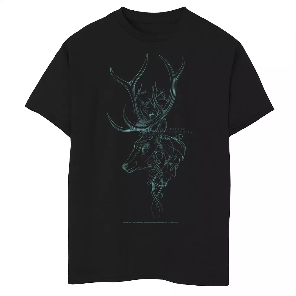 He’ll love showing off his favorites with this boys’ Deathly Hallows 2 Patronum Blue Hue Outline Graphic Tee.