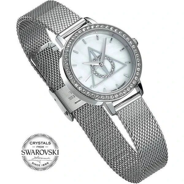 A women’s watch from Harry Potter which runs on batteries. Just swap them out if the watch stops. Great looking hands complement the watch face and case perfectly. There are several available materials for the strap, for example stainless steel. This watch should survive getting wet, since it is water protected up to 3 atm (30m).