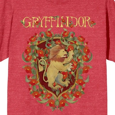 - CUSTOM DESIGN: An image of the Gryffindor lion crest covered in roses decorates the front of this graphic tee while yellow letters spell out, “Gryffindor.” Harry Potter fans will love this fun custom design.