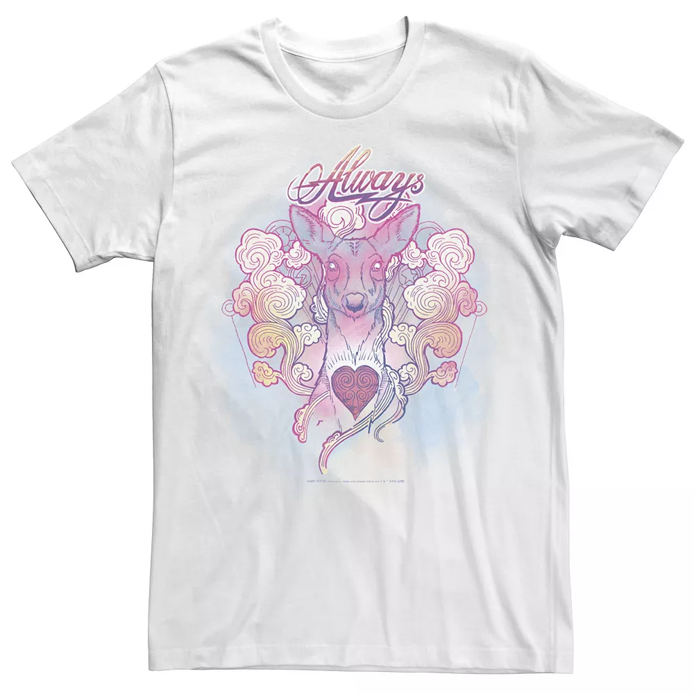 Snape and Lily’s deep friendship lives on with this men’s Deathly Hallows 2 Always Water Color Doe Portrait tee.