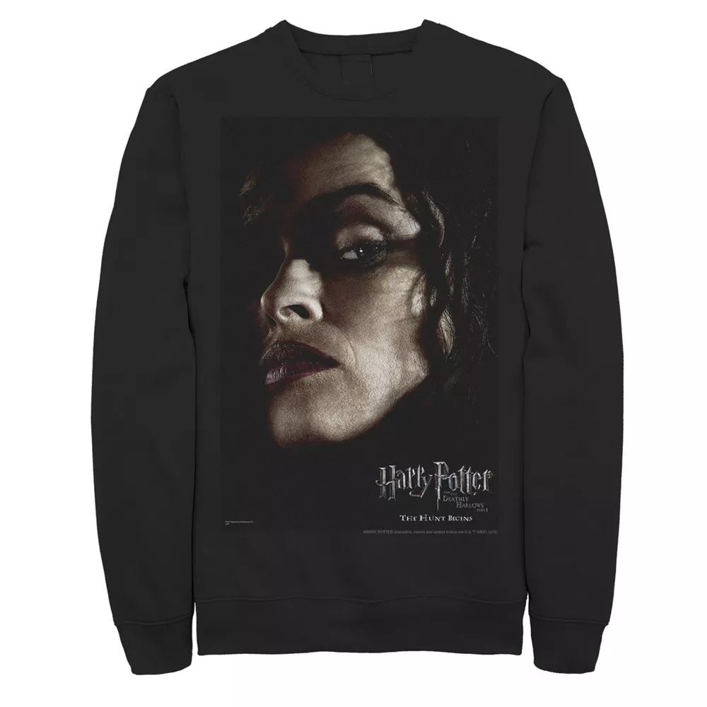 He’ll love the look of this Men’s Harry Potter Deathly Hallows Bellatrix Character Poster Fleece Graphic Pullover.